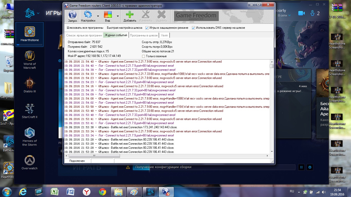 19.09.2016 22:58:36 - GFшлюз - Battle.net.exe:Connect to 195.12.240.54:80 error, msg=socks5 server return error:Connection refused