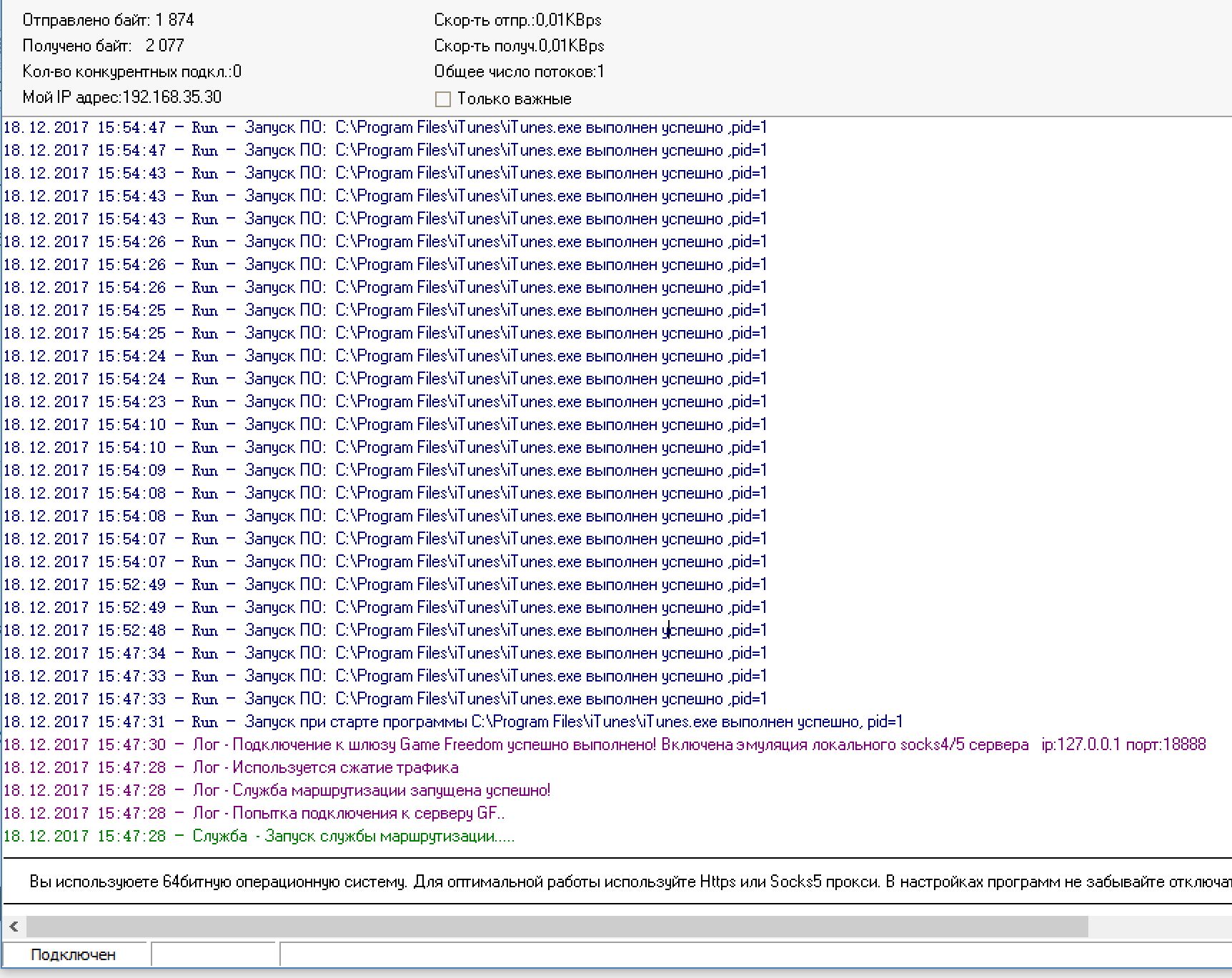 Я добавлял программу согласно инструкции приведенное здесь http://gamefreedom.ru/setup-freedom.php , но ничего не вышло. С подключением нет никаких проблем, но iTunes просто не запускается.