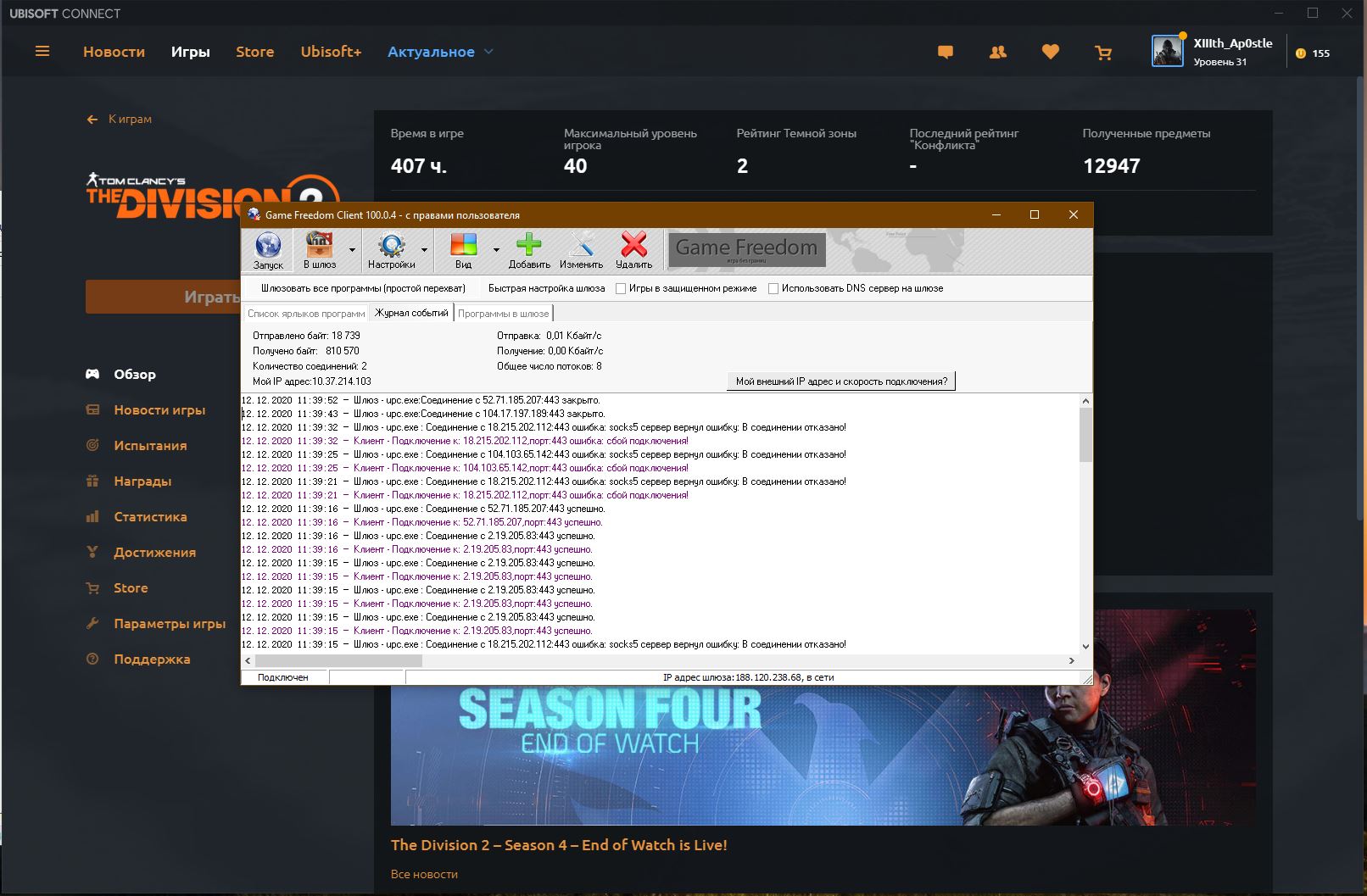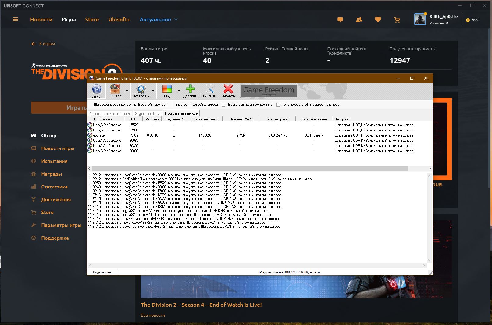 После запуска игры данную опцию необходимо отжать что бы другие программы не начали ходить через шлюз.