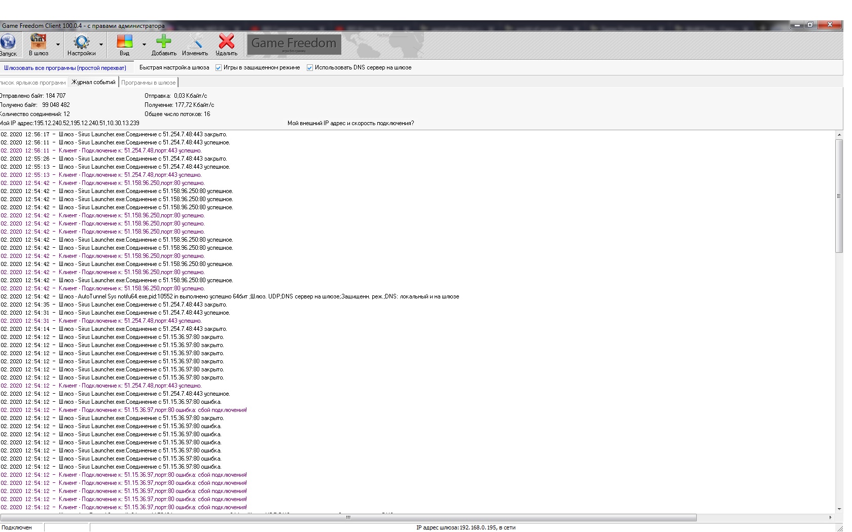 12.02.2020 13:05:12 - Шлюз - Sirus Launcher.exe:Соединение с 51.254.7.48:443 успешное.